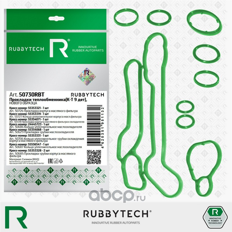 Расширенное описание: Прокладки теплообменника OPEL Astra, Insignia, Signum, Vectra, Zafira, силикон MVQ, к-т 9 дет.