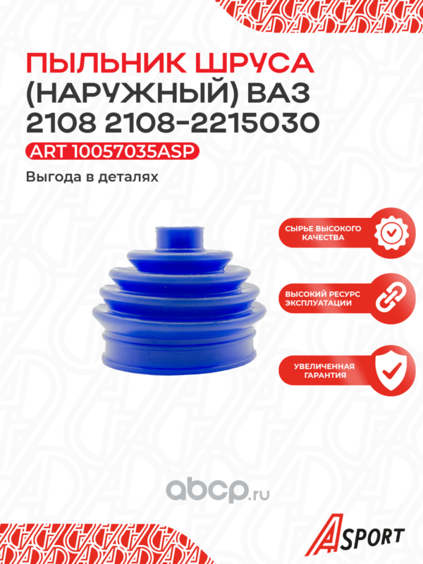 A-SPORT | 10057034ASP | Пыльник ШРУС (чехол привода) для а/м ВАЗ 2108-099; 2110-12; 2113-15; 2170-72, наружн, уп 1 шт., силикон, красн. |