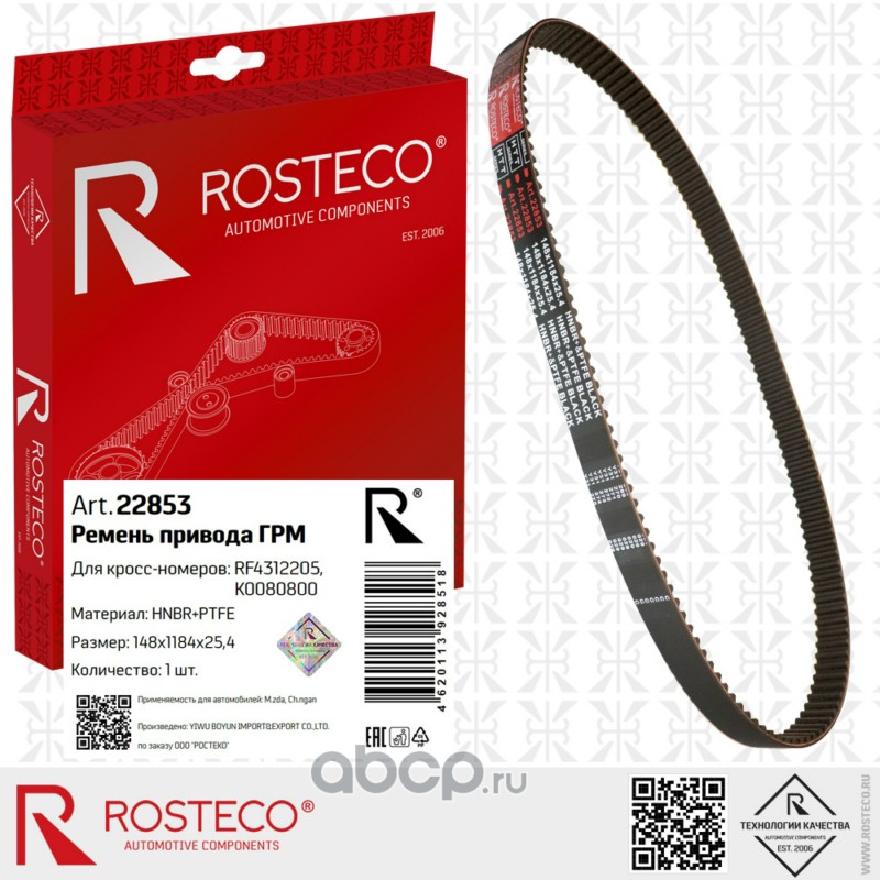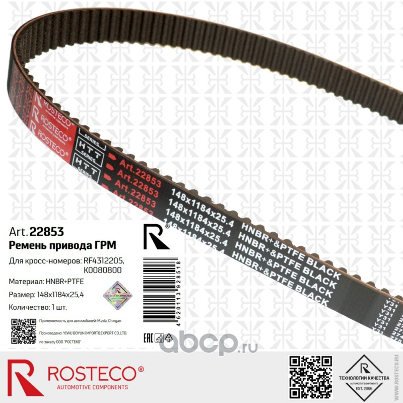 Ремень привода ГРМ 148х1184х25,4 HNBR+PTFE Mazda, Changan