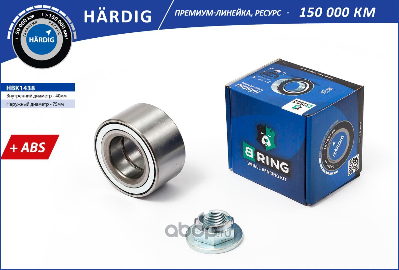 B-RING | HBK1438 | Подшипник ступицы (перед. компл.) [40x75x37 с ABS] |