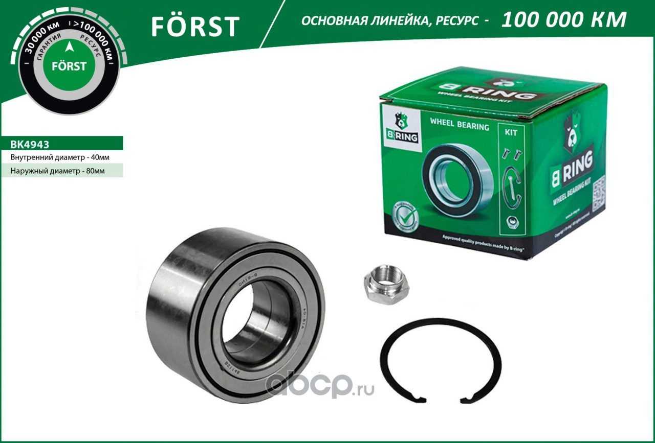B-RING | BK4943 | Подшипник ступицы (перед. компл.) [40x80x40] |