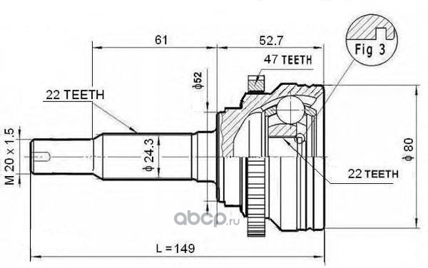 B-RING | BOC8011A | ШРУС (наруж.) [с ABS, 22/22] |