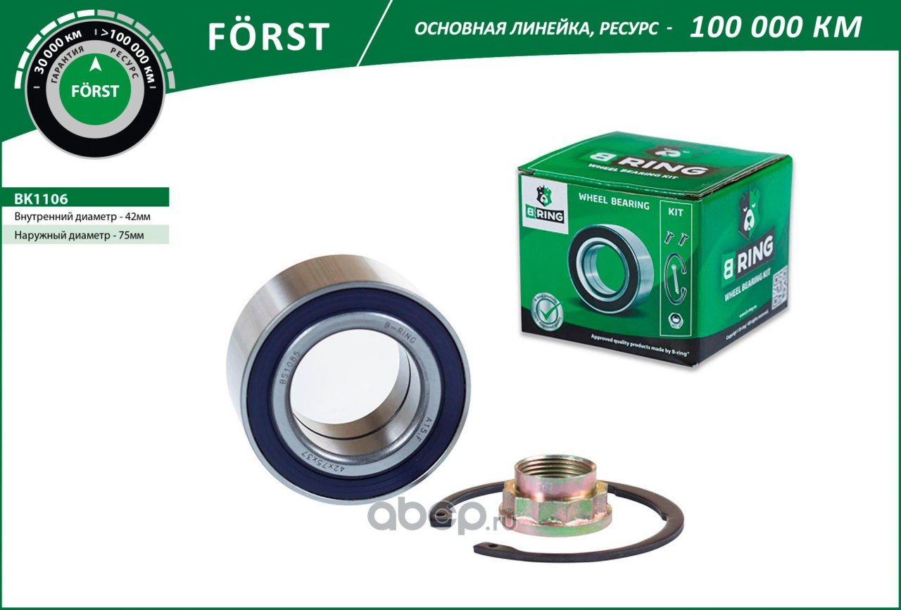 B-RING | BK1106 | Подшипник ступицы (задн. компл.) [42x75x37] |
