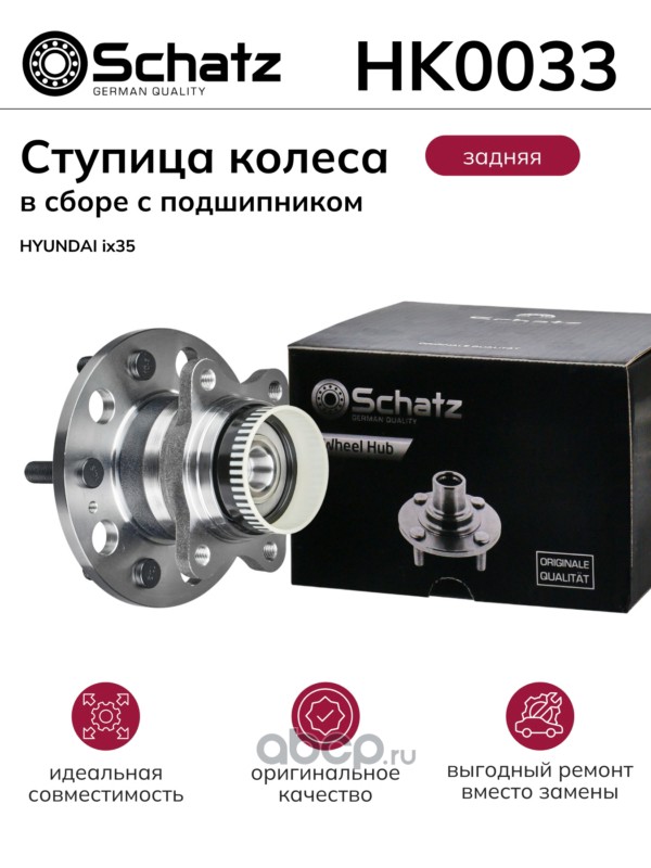 Schatz | HK0033 | Ступица колеса в сборе с подшипником (задняя) HYUNDAI ix35 |