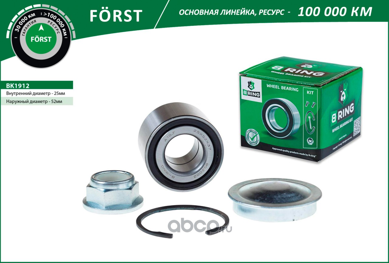 B-RING | BK1912 | Подшипник ступицы (задн. компл.) [конич. 25x52x37] |