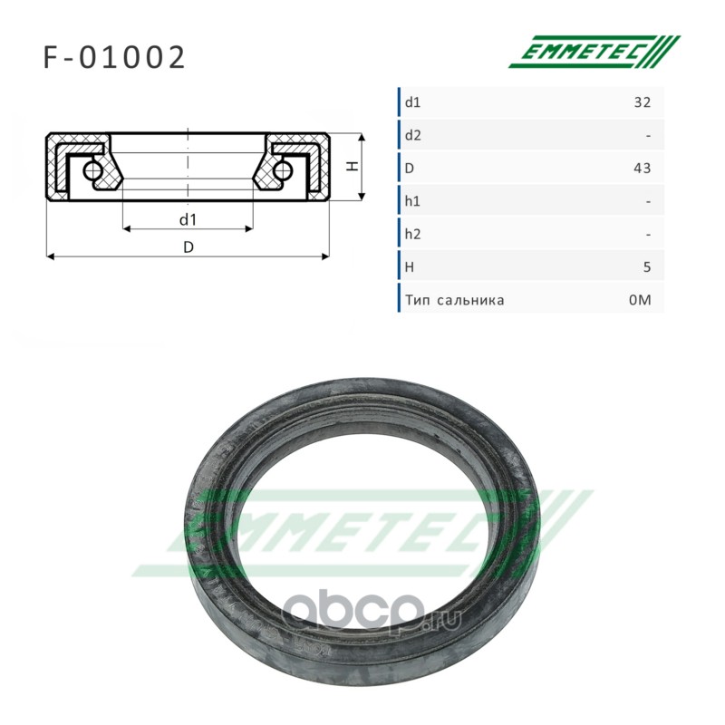 EMMETEC | F01002 | Сальник рулевой рейки 32*43*5 (0M) |