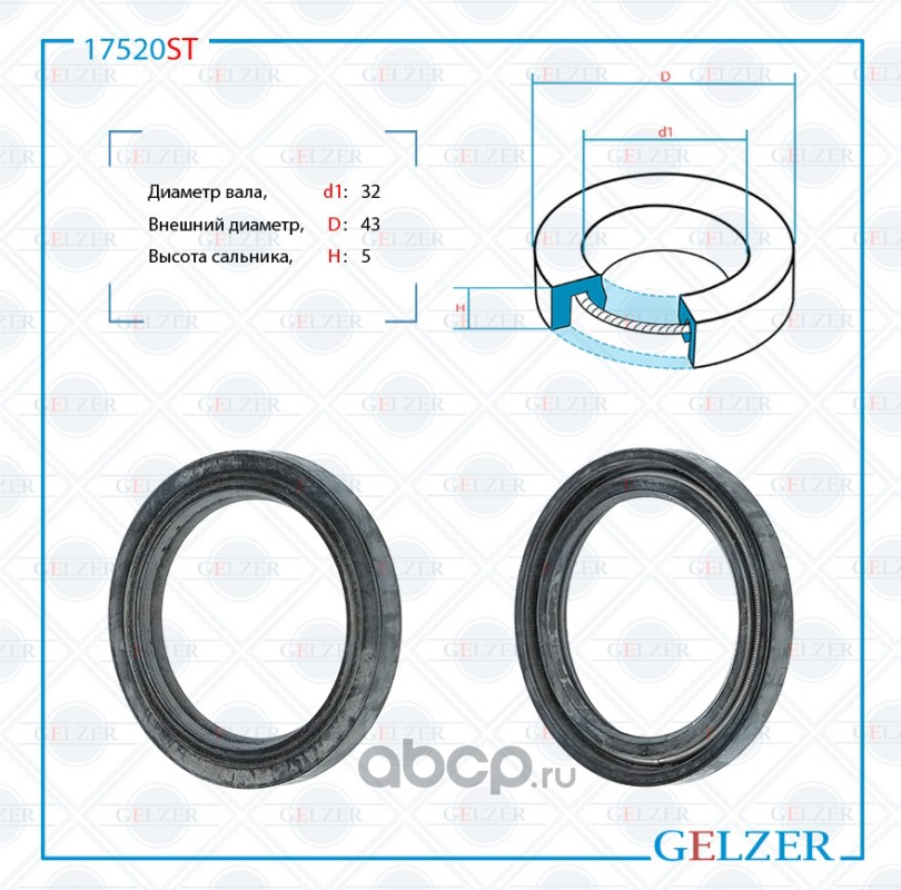 GELZER | 17520ST | Сальник рулевой рейки 32*43*5 (0M) |