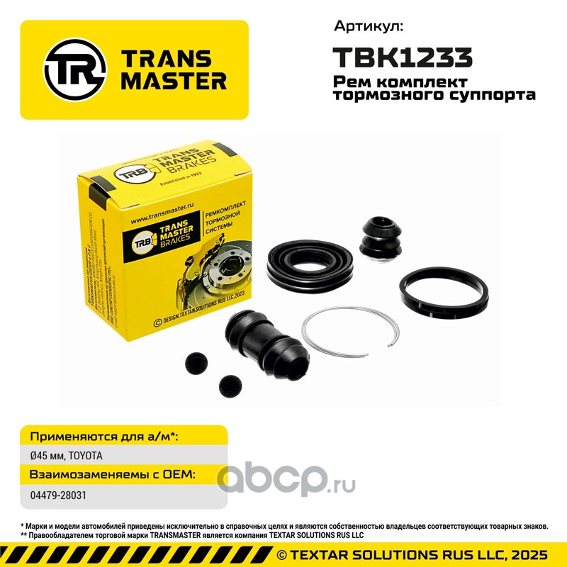 TRANSMASTER | TBK1233 | Ремкомплект тормозного суппорта |