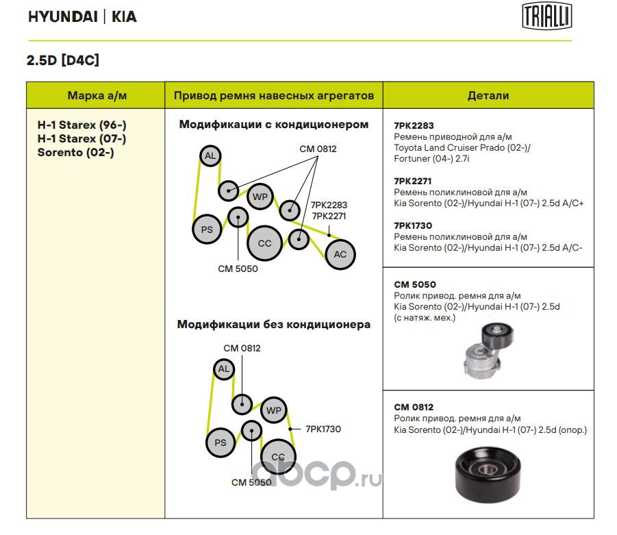 Ролик привод. ремня для автомобилей Kia Sorento (02-)/Hyundai H-1 (07-) 2.5d (с натяж. мех.) (CM 5050)