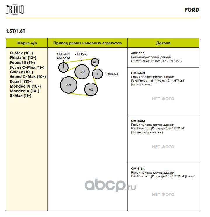 Ролик приводного ремня для автомобилей Ford Focus III (11-)/Kuga (13-) 1.5T/1.6T с натяжным механизмом