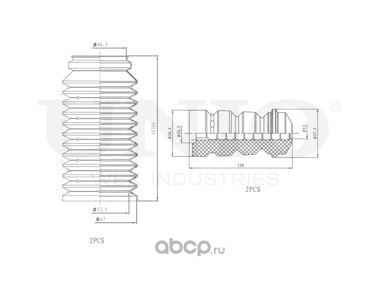 Комплект пыльник и отбойник, 2 шт.