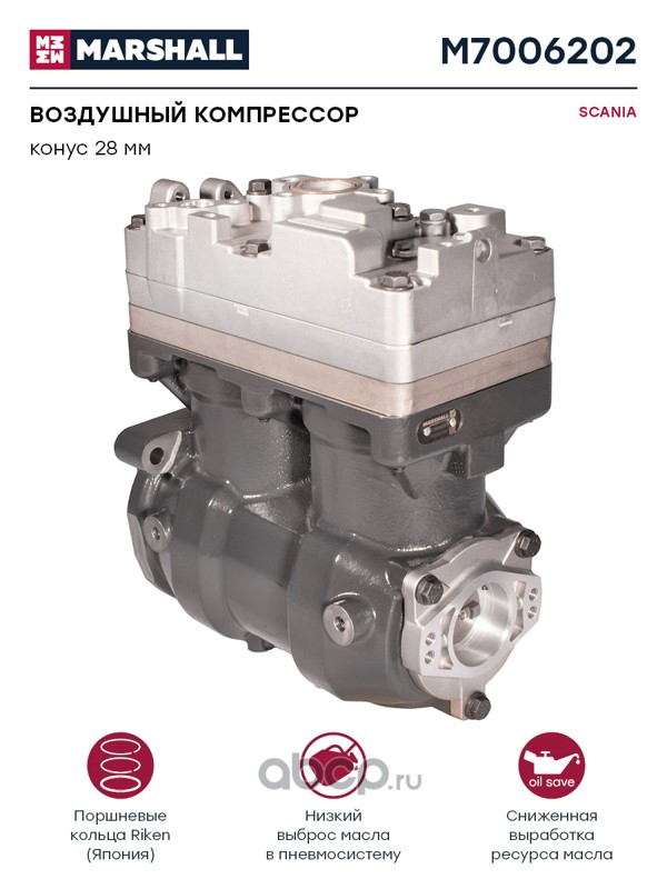 MARSHALL | M7006202 | Воздушный компрессор SCANIA двухцилинд. 720 cc, конус 28 мм, о.н. K024410X00 (M7006202) |
